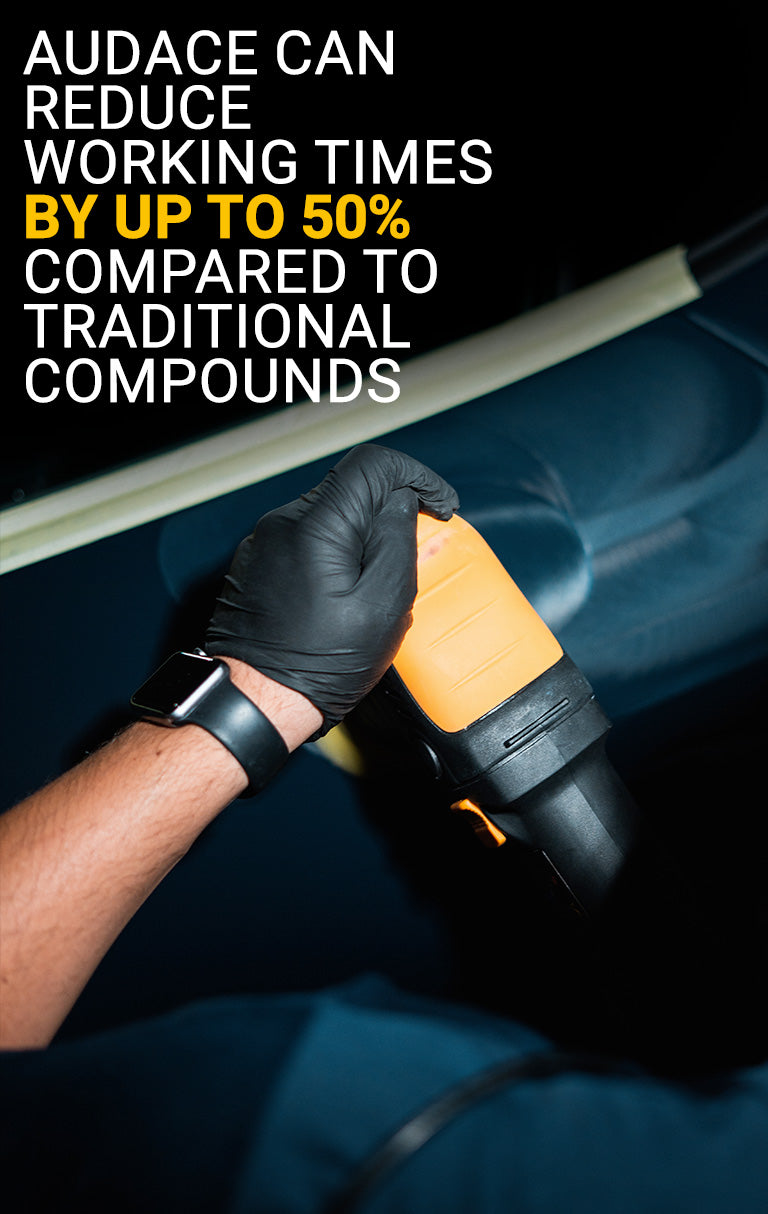 Med AUDACE kan tiden som kreves reduseres med opptil 50 % sammenlignet med tradisjonelle poleringsmidler.