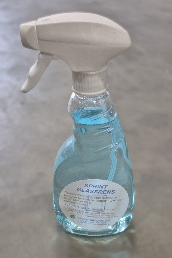 Glassrens er et spesial produkt beregnet for vask av vinduer, speil samt andre blanke flater. Fjerner fett og annen skitt meget effektivt.