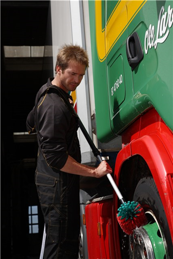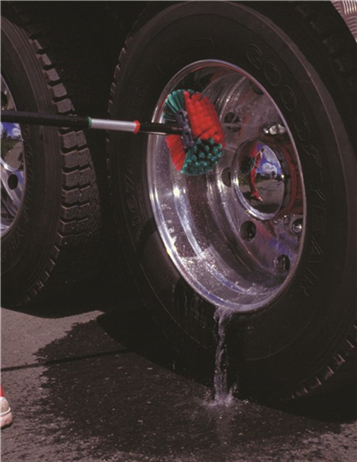 Denne store felgbørsten fra Vikan rengjør effektiv både doble og enkle felger på lastebiler, busser og andre store kjøretøy